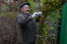 Владимир Михайлович показал и рассказал ребятам, как и с какой целью, подвязывают кусты к зиме.