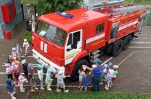 Так же сотрудники пожарной части продемонстрировали ребятам специальную пожарную технику и пожарно-спасательный инвентарь, показали предметы боевой одежды.