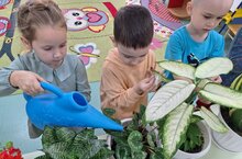 Комнатные растения в детском саду — это не только предмет интерьера, но и средство знакомства и общения дошкольников с природой. Наблюдая за растениями, мы знакомим детей с особенностями внешнего вида, строением, учим выполнять трудовые действия по уходу за ними в правильной последовательности. Дети старшей группы любят ухаживать, поливать растения, протирать крупные растения влажной тряпочкой, рыхлить почву и опрыскивать листья. Такие элементарные трудовые поручения воспитывают интерес к комнатным растениям и желание ухаживать за ними. Воспитывают в детях уважительного отношения к труду, бережное отношение к природе, умения и желания включаться в совместный труд со сверстниками. -