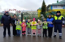 Подготовительная группа совместно с инспектором ДПС отделения Госавтоинспекци ОМВД России по Сабинскому району - Мазитовым Ф.З. и начальника отделения в Сабинском районе отдела профилактики ТУ в г. Казани ГБУ «БДД» Ягафаровой Г.Н. провели акцию «Засветись» для пожилых людей. Мероприятие повысило их осведомленность о безопасность при переходе дорог и движении в темное время суток, напомнив о пользе светоотражающих элементов и яркой одежды. Акция также напомнила о правилах дорожного движения и личной безопасности, формируя ответственное отношение к здоровью.