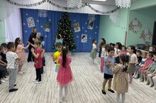 На развлечении дети веселились у новогодней елки: были танцы, песни, игры. А в конце праздника ёлочка погасила свои огоньки…
