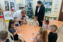 2 нче кон тәртибендә балалар әти-әниләре белән бергәләп чыршы уенчыгын бизәү мастер-классында катнаштылар