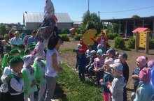 Во время праздника детям в гости приходил Домовенок Кузя с веселыми играми.