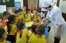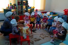 В ясельной группе прошло необычное занятие – одна из мам Рахматуллина Алиса – показала малышам, как и из чего делают хлеб. Она объяснила, что хлеб сначала растят на поле, потом собирают зерна комбайном, из зерен делают муку. Замесив тесто, показала, как получается хлеб. Детям очень понравилось это занятие. Хоть они еще и маленькие, но знают, что хлеб – самая главная еда на столе