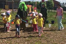 Бу атнада татар халкы яшәгән һәр төбәктә милли бәйрәмебез Сабантуйлары гөрлиячәк. Бәйрәм кәефен тагын да арттыру, балаларыбызны милли бәйрәм, аны үткәрү йоласы, уеннары белән якыннан таныштыру максатыннан, бүген бакчабызда зурлап Сабантуй уздырдык. Бәйрәм йолага туры китереп, бирнә җыю белән башланып китте. Милли киемнәр кигән малайлар һәм кызлар колга тотып, гармун уйнатып, “урра” кычкырып, һәр төркем мәйданчыгына килеп, сөлге-тастымаллар җыеп йөрделәр. Бәйрәм тамашасы мәктәпкә әзерлек төркеме балалары әзерләгән концерт номерлары белән дәвам итте. Ә аннан соң зур мәйданда Сабантуйның төп өлеше башланып китте. “Бәләкәч”тә бәйрәм буласын белеп, кунакка яраткан дусларыбыз Су анасы белән Шүрәле дә килеп җитте. Алар балаларны көлдерделәр, шаярдылар бергәләп милли уеннарда катнаштылар. “Атка” атланы чабу , чүлмәк вату, капчык киеп, кашыкка йомырка куеп йөгерү, аркан тартышу, чиләк-көянтә белән су ташу һ.б уеннарда балалар чын күңелдән , рәхәтләнеп көч сынаштылар. Малайлар келәмдә бил алышканда һәркайсыбыз көрәшчеләргә җан атып тордык. Балалар Сабантуйдан бүләкләр алып , шат кәеф, күтәренке күңел белән таралыштылар. Бүгенге көн сабыйларыбыз күңеленә балачакның матур бер мизгеле булып кереп калды.