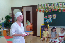 Балаларны әти-әниләрнең һөнәре белән тагын да якыннан таныштыру максатыннан, мәктәпкә әзерлек төркеме группасына шәфкать туташы булып эшләүче әниләребезне кунакка чакырдык. Саба үзәк шифаханәсендә эшләүче Тимергалиева Чәчкә Нәзир кызы белән Салахиева Эльмира Ильфар кызы бу очрашуга бик теләп килделәр. Алар балаларга үзләренең нәрсә белән шөгыльләнүләре, ни өчен бу һөнәрне сайлаулары, авыру белән ничек итеп аралашырга, табиб булу өчен тырышып укырга кирәклеген бик матур итеп сөйләделәр. Бала тудыру бүлегендә эшләүче әниебез Чәчкә Тимергалиеваның “бәби”не биләүләп күрсәтүе – балалар өчен иң мавыктыргычы булды. Бакчабызда тәрбияләнүче малайлар Инсаф белән Камилнең әнисенә зур рәхмәтләребезне җиткерәбез.