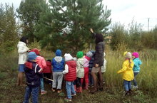 С целью формирования элементарного представления об осенних изменениях в природе воспитанники старшей группы №1(воспитатели Хабибрахманова Д.Р., Закирова М.И.) совершили тематическую экскурсию , в ходе которой наблюдали за цветом листьев на деревьях, цветами, растущими вокруг, погодой. Воспитатели предложили полюбоваться разноцветными осенними листьями, обратить внимание детей на то, как одеты осенью взрослые и дети, закрепили представление о чудесных осенних дарах.