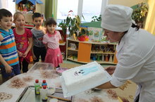 Воспитатели подготовительной группы №1 активно практикуют новые формы работы с родителями воспитанников. Вот и сегодня дети совершили путешествие в ресторан , повторив при этом правила поведения в общественных местах. Научились правильно сервировать стол для гостей, заглянули на кухню к кондитеру (родитель Давлятова Г.З.), были удивлены секретами его мастерства и под конец путешествия отведали лакомство, любимое всеми.
