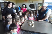 Хлеб... Какое короткое это слово, но сколько сил, труда, знергии нужно для того, чтобы вырастить его! Он - мерило нашего богатства, самое важное изобретение человеческого ума . Хлеб приходит на наш стол в результате тяжелого труда. С частью этого труда познакомились сегодня воспитанники двух групп нашего детского сада. Дети вместе с воспитателями совершили экскурсию в пекарню, где поэтапно смогли увидеть технологию приготовления хлебных изделий и булок, украшения тортов. Ребята осознали важность этого ценного и полезного продукта питания, без которого не проходит ни один день, ни один праздник.