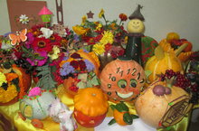 Одиннадцатый год подряд в нашем районе отмечается большой праздник - мы славим ценнейший и полезнейший овощ, растущий на нашем огороде, - Тыкву. Сколько вкусного можно приготовить из тыквы, сколько витаминов и микроэлементов содержится в ней. А сколько удивительных овощных фантазий можно изготовить своими руками! И в этом году коллектив воспитателей, родителей и детей принял самое активное участие в празднике урожая. Великолепные композиции, фигурки людей и животных, цветочные фантазии, сладости и вкусные пирожки, пирог из тыквы и выступление агитбригады - все было представлено на суд компетентного районного жюри. Результат нашего совместного труда был отмечен:в номинации "Самая красивая композиция из тыквы" мы награждены дипломом 3 степени, а выступление агитбригады оценено дипломом 2 степени. Спасибо всем за творчество, активность и труд!