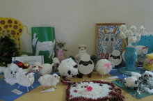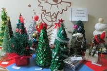 В детском саду организована выставка новогодних поделок, открыток, креативных елочек, украшенных игрушками, сделанными детьми и родителями в совместной деятельности. Правду говорят, что фантазия человека не имеет границ. Каких только чудесных фигур, предметов, украшений не смастерили наши талантливые и творческие родители.