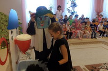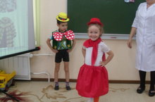 Воспитатель по обучению английскому языку Абдуллина Л.Р. вместе с детьми подготовительной группы №2 подарили собравшимся сказку "Пряничная девочка". Пряничная девочка отправилась путешествовать по лесу, встретилась с различными животными, насекомыми, подружилась с ними, но ,к сожалению, друзья оказались не настоящими друзьями. Из беды девочку выручили пчелы, и справедливость восторжествовала. Песни, шутки, танцы украсили сказку. Все воспитанники этой группы приняли активное участие в постановке. Скучающих в зале не было!