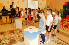 Воспитатель по обучению английскому языку Гарипова Лейсан Мухаррамовна организовала и подготовила с детьми подготовительной группы №2 КВН "I know English" как одну из форм проведения работы кружка. Две команды показывали свои знания по английскому языку по темам «Животные», «Семья», «Цвета», «Цифры и счет». По мнению участников семинара,у детей сформирован достаточный словарный запас, развиты коммуникативные навыки, командный дух, стремление к победе. Выступление детей оставило самые теплые впечатления. В теоретической части был дан анализ деятельности педагогов. Воспитатели познакомились с новыми пособиями, входящими в УМК , прослушали доклад воспитателя по обучению русскому языку Исмагиловой Миляуши Илхамовны на тему: "Совершенствование коммуникативных навыков детей дошкольного возраста". Семинар прошел интересно, с пользой для всего педагогического коллектива.