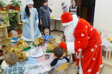 По традиции Дед Мороз и Снегурочка поздравили детей с Новым годом, подарили с пожеланиями здоровья, счастливого детства, радости и смеха. Ребятишки были приятно удивлены и очень обрадовались приходу любимых зимних гостей.