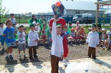 Җәй- иң гүзәл ел фасылларының берсе. Җәйге чор җитү белән безнең "Бәләкәч"бакчасы искиткеч әкияти илгә әверелә. Мәктәпкәчә яшьтәге балаларда әкият зур кызыксынучанлык тудыра. Балалар әкият персонажларын яраталар. Иртән капканы ачып керүгә балаларны "Колобок" әкиятеннән- Аю белән куян, "Царевна лягушка" әкиятеннән-Бака балаларны елмаеп каршы алалар.