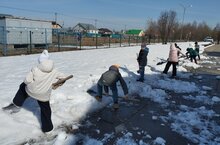 Ребята подготовительной группы помогли взрослым расчистить территорию детского сада от снега. 01.04.2025