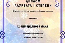 Подведены итоги XI Международного дистанного фортепианого конкурса "Зимняя мозаика". В феврале нём приняли участие ученики класса преподавателя Хафизовой Чулпан Фанисовны.