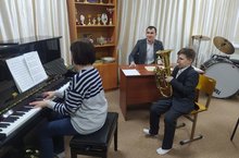 Открытый урок прошёл с учеником 1-го класса духового отделения с Рамазановым З. (преп.Фатхуллин А.А.) 15.04.2022