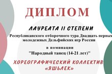 В феврале в г.Казани прошел Республиканский отборочный тур Двадцать первых молодежных Дельфийских игр Росси , где принял участие хореографический коллектив «Яшьлек» и стал обладателем диплома Лауреата II степени (рук.Мубаракзянова А.З). Преподаватель Мубаракзянова Альбина Зуфаровна была отмечена Благодарственным письмом «За подготовку Лауреата Республиканского отборочного тура Двадцать первых молодежных Дельфийских игр Росси»