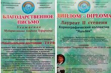 Хореографический коллектив "Яшьлек" (рук.Мубаракзянова А.З.) завоевал диплом лауреата II степени Международного телевизионного конкурса "Национальное достояние"(заочно). 01.06.2020