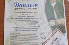 Шарипов Марсель - Лауреат ll степени.Преподаватель Масленников Евгений Васильевич отмечен дипломом за педагогическое мастерство и благодарственным письмом.