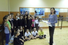 27 октября 2015 года преподаватель хореографии Сабинской ДШИ Галиахметова Гузель Маратовна провела родительское собрание в виде открытого урока с учащимися 1 класса отделения хореографии на тему: «Партерная гимнастика».