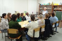 В ходе собрания обсуждались планы на новый учебный год. Преподаватель ответила на вопросы родителей. -