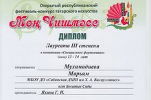 Салимова Сафия - лауреат III степени; лауреат III степени