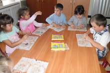 Әвәләү шөгылендә балалар яшелчәләрдән натюрморт ясадылар.
