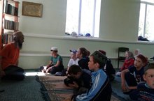 Бүген лагерьда ял итүче укучылар дин сабаклары алырга һәм авыл мәчете белән танышырга Аллах йортына бардылар.