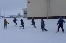 Бүген физкультура фәне укытучысы Әхмәтшин И.И. 4-7 нче сыйныф егетләре белән футбол уенын спортзалда түгел,ә чын киез итекләр киертеп карда уйнатты.Егетләргә бу бик ошады.Ләкин карда уйнау авырырак икән,шыр тиргә баттылар.Саф һава-тәнгә дәва.