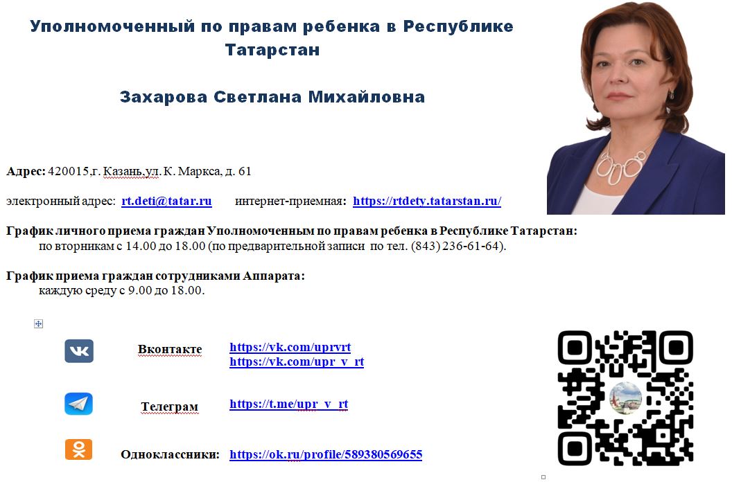 Опубликовано: 31.05.2027Уполномоченный по правам ребенка в Республике Татарстан