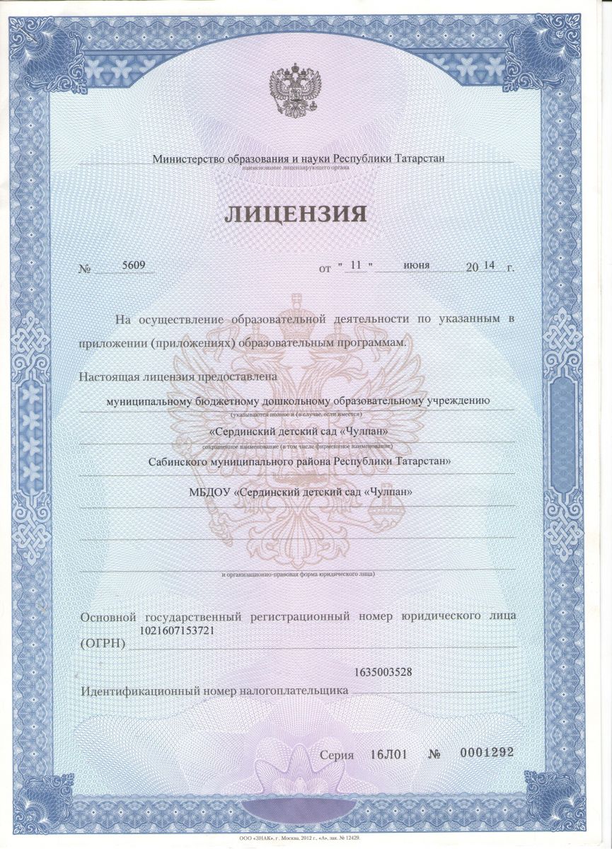 МБДОУ «Сердинский детский сад «Чулпан» Сабинского муниципального района РТ» (реорганизация)