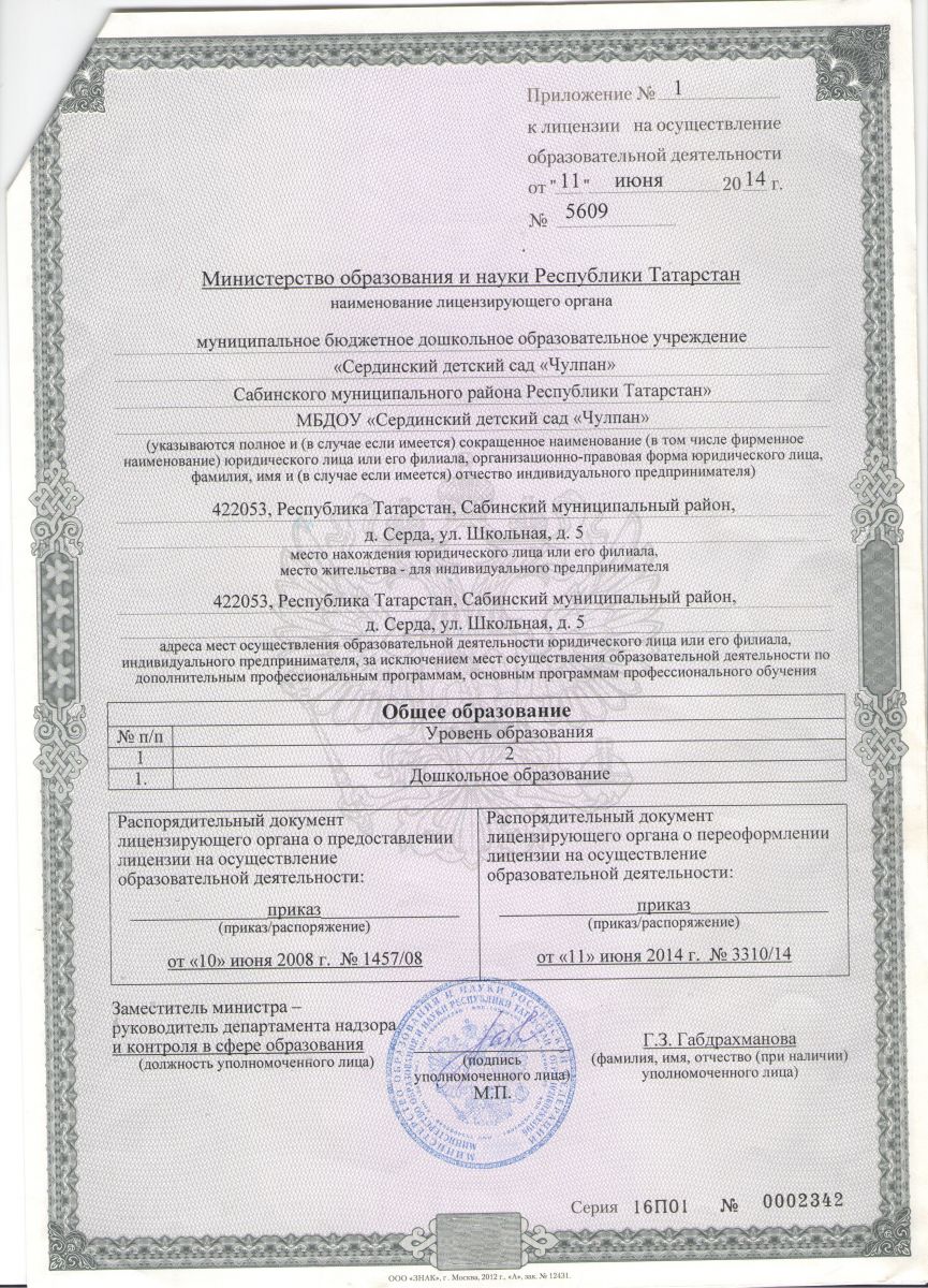 МБДОУ «Сердинский детский сад «Чулпан» Сабинского муниципального района РТ» (реорганизация)