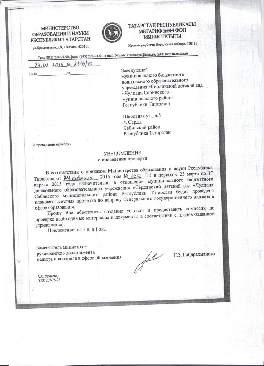 МБДОУ «Сердинский детский сад «Чулпан» Сабинского муниципального района РТ» (реорганизация)