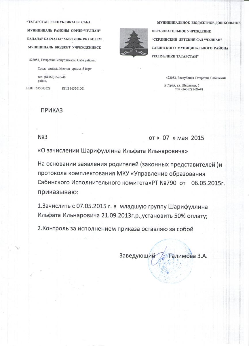 МБДОУ «Сердинский детский сад «Чулпан» Сабинского муниципального района РТ» (реорганизация)