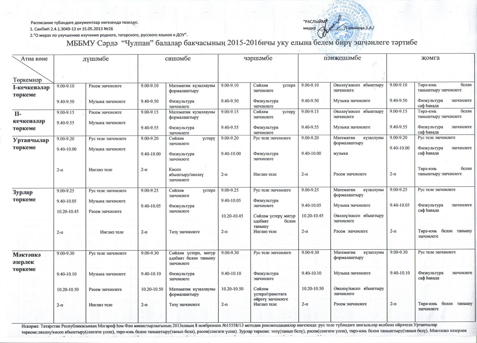 распорядок дня 2015-2016 учебный год