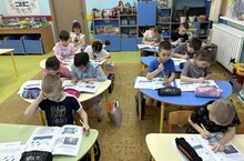 Дети пилотных подготовительных групп продолжая работу в рабочих тетрадях "Путешествие начинается", выполнили задания от ученого Асылташа по теме "Наука и технологии". Ребята провели эксперименты, опуская предметы в воду и понаблюдали, какие из них тонут, а какие - нет. Далее в рабочей тетради обвели только те предметы, которые утонули.