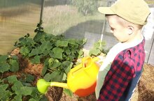 Труд в жизни каждого человека имеет определяющее значение, поэтому приобщать ребёнка к труду необходимо уже в дошкольном возрасте. Организация трудовой деятельность позволяет нам воспитывать трудолюбия, формировать навыков трудовой деятельности. Воспитанники старшей группы нашего детского сада с удовольствием выращивают в теплице огурцы и помидоры. Процесс труда доставляет детям радость, так как они видят результат своей работы и с нетерпением ждут время сбора урожая.