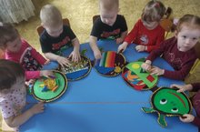 С целью различать и называть основные цвета, развивать тактильные ощущения, мелкую моторику рук и пальцев, выполнения дыхательной гимнастики, гимнастика для глаз во второй группе раннего возраста №2 была проведена игра "Здоровая гусеница". Малыши с интересом изучали Гусеницу и играли с ней.