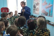C целью расширения и обобщения представление детей о профессиях, развития интереса к различным профессиям воспитанники подготовительной группы №1 продолжают участвовать в проекте «Saba Balahoner». На этой недели ребята посетили станцию "Военный комиссариат". Ребятам рассказали о воинах Российской Армии, о её непобедимой силе, о её могучей технике, о том, какая это особая честь - нести службу в её рядах.