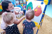 В целях пропаганды здорового питания среди детей и родителей и создания условий для формирования знаний о правилах правильного питания в МБДОУ проходят мероприятия по здоровому питанию. Сегодня с детьми второй группы раннего возраста №2 была проведена дидактическая игра "Разберем по корзинкам". Они научились тщательно мыть овощи и фрукты, угостили Мишутку вкусным чаем. Ребята с удовольствием приняли участие в игре.