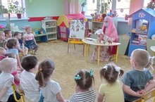 Сегодня с целью познакомить детей с национальными блюдами татарского народа, через татарскую кухню воспитать уважение к истории, традициям и обычаям заведующая Шеморданской детской библиотекой Галиакберова Р.Х. организовала для воспитанников старшей группы №2 мастер-класс “Секреты татарской кухни”. Через электронной презентации “Татар халык ашлары” дети узнали о гостеприимстве татарского народа, о его сытной, простой, вкусной, полезной и разнообразной еде. Из фильма руководителя республиканской общественной организации татарских женщин “Ак калфак” Кадрии Раисовны “Ступени воспитания” детям был инсценирован отрывок “Ашау әдәпләре”. После сценки была организована игра “Өстәл артында үз-үзеңне тоту кагыйдәләре”. Гостем мероприятия стал Медведь из сказки “Маша и медведь”. Дети изучили названия и особенности каждого татарского национального блюда, которые принёс Медведь. Через стихотворение Резеды Валиевой “Ашлар солтаны” дети узнали, что хлеб - самое дорогое блюдо татар. Потом был организован мастер-класс по изготовлению хвороста. Дети с большим интересом раскатывали тесто, вырезали хворост. Пока повара детского сада обжаривали наши хворосты, для детей была организована игра “Ступай на место”, проведен обзор книжной выставки “Милли татар ашлары”. Посыпав готовые хворосты сахарной пудрой, дети поспешили их продегустировать и были в восторге! Хворост получился очень вкусным, а мероприятие – насыщенным и весёлым.