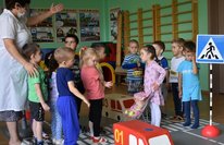 В организации сюжетно-ролевых игр большое значение имеет создание предметно-развивающей среды. Для организаций сюжетно-ролевой игры "Мы- пешеходы" в нашем ДОУ имеется макет улицы с перекрестком, указателями для пешеходов, светофора, макеты домов и автомобилей. Здесь дети могут не только поиграть, но и отработать и закрепить полученные знания правил поведения культурного водителя и пешехода, дорожных знаков, совместно с воспитателем разбирают ситуативные задачи по безопасности дорожного движения.