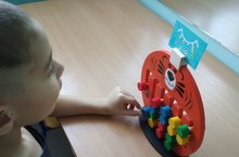 Занимательная игра "Тигренок" -тренажер для развития интеллекта детей, который учит ребят выполнять задания по образцу, рассуждать самостоятельно, умению думать. Играя с "Тигренком" дети развивают концентрацию внимания, воображение, терпение и усидчивость, координацию и последовательность движений, мелкую моторику и ловкость рук, память, речь, различают цвета. Учитель-логопед Габдрашитова Ф.М. отмечает, что это игра вызывает интерес и они с удовольствием выполняют задания.