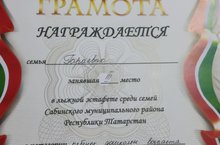 Семья Гараевых участвовала в лыжной эстафете среди семей Сабинского муниципального района проведенной с целью выявления сильнейших спортивных семей, пропаганды ЗОЖ, привлечения воспитанников и их родителей к регулярным занятиям физической культурой и спортом, укрепления семейных взаимоотношений посредством физической культурой. По результатам эстафеты в категории "Ребенок дошкольного возраста" они заняли третье место и были награждены Почетной грамотой. Поздравляем с победой и желаем новых спортивных достижений!
