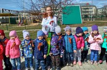 В нашем детском саду в преддверии праздника Дня Победы, прошла акция «Георгиевская ленточка». Дети узнали, почему ленточка имеет такое название, о том, что цвета ленты черный и оранжевый означают «дым и пламя» и являются знаком личной доблести солдата на поле боя. Георгиевская ленточке сегодня не дает забыть новым поколениям, кто и какой ценой одержал победу в самой страшной войне прошлого века, чьими наследниками мы остаёмся, чем и кем должны гордиться, о ком помнить.