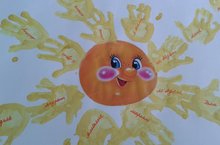Обобщая тему недели наши самые маленькие воспитанники осволи нетрадиционную технику рисования-отпечатки ладошек. "Маленьким художникам" очень понравилась эта коллективная работа,