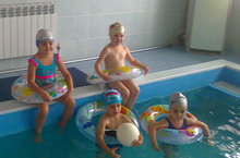 В средней группе № 1 идет занятие по плаванию. Его ведет инструктор по плаванию Шамилова Альбина Фадисовна. На занятие дети получают заряд бодрости на целый день, закаливаются. Плавание дает прафилактику скалиоза, прафилактику простудных заболеваний, положительно влияет на деятельность сердечно- сосудистой системы, способствует развитию органов дыхания. Дети учатся уверенно и безбоязненно держаться на воде, первоначальным навыкам и приемам плавания.