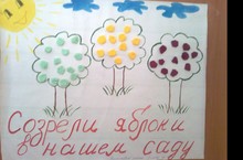 Задачи.Закреплять представления детей о строении яблоневого дерева.Учить видеть "яблоко" в разных по цвету комочках бумаги.Включать их в заданную композицию,идентифицируя по цвету, преобразуя и дополняя композицию "яблоками"; сминать пальцами лист мягкой бумаги, превращая его в комок- "яблоко".